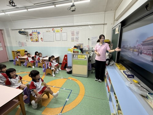 濠江中學附屬幼稚園於今日迎來新學年開學日,K1年級新生在莊重而溫馨的氛圍中開啟了人生重要的學習旅程。學校匠心獨運,將愛國主義教育巧妙融入開學第一課,特別組織全校師生共同觀看國家閱兵儀式直播,讓幼小的心靈在震撼的視聽盛宴中感受國家的強盛與榮光。