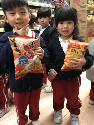 2017年12月18日至 29日K1級為配合本學期主題教學,寓教於樂,走進社區進行超市購物之游,透過實際觀察,親身體會,認識到每個區域的各種商品,合作選購喜歡的零食,學習自己付款。