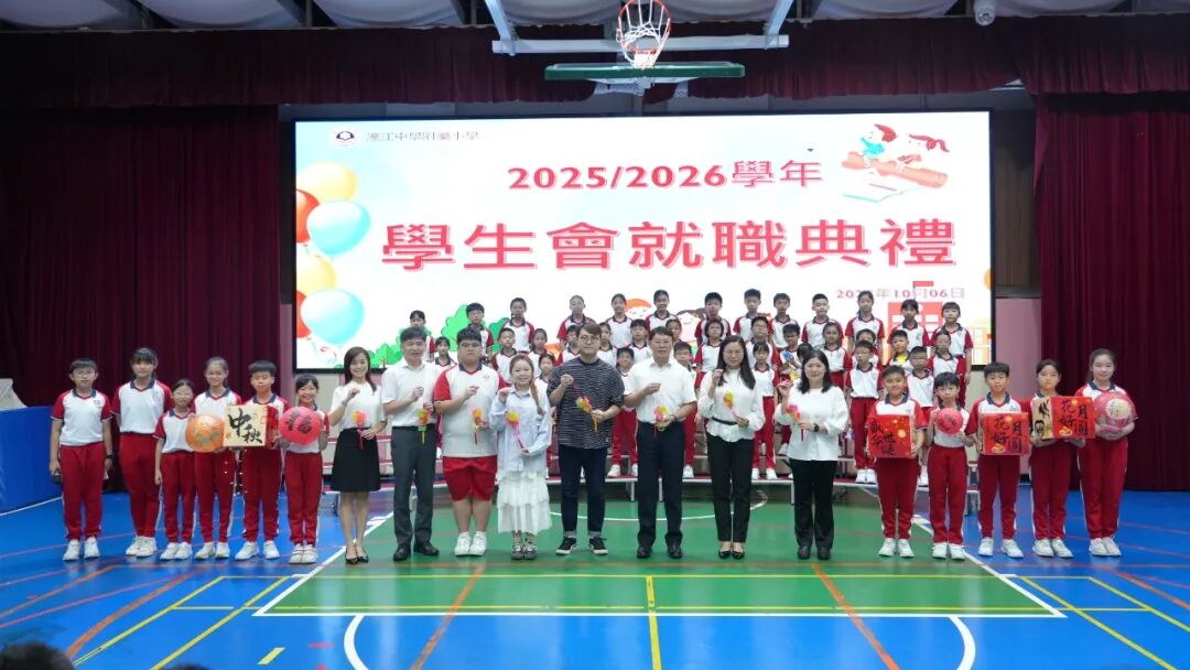 濠江中學附屬小學日前舉行 2025-2026 學年新一屆學生會就職典禮。本屆學生會共加入 50 餘名幹事,在濠江中學副校長陳步倩、中華學生聯合總會副監事長楊煒軒、升學及心理推廣部部長易碧玉,中學部學生會副主席鄭博瑋,小學學生會輔導老師胡杏珊,以及全校教職工與學生的共同見證下,全體幹事莊嚴宣誓就職,現場氣氛肅穆莊重,充滿對新學年的期待。