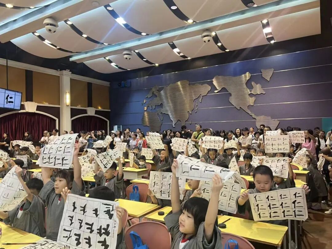開筆禮作為中華傳統文化中幼兒識字習禮的重要啟蒙儀式,素有「破蒙」之義,意義堪比成人加冠禮。活動伊始,主禮嘉賓揭開儀式序幕,現場教師、學生、家長及嘉賓均身著仿古禮服,莊嚴感十足。濠小的一年級學童們首先跟隨指引整理衣冠,體會「先正衣冠,後明事理」的古訓;隨後依次向孔聖先賢、授課老師及養育父母行拱手禮,在規範動作中感受中華禮儀的莊重,傳遞尊師重道與感恩孝親的美德。