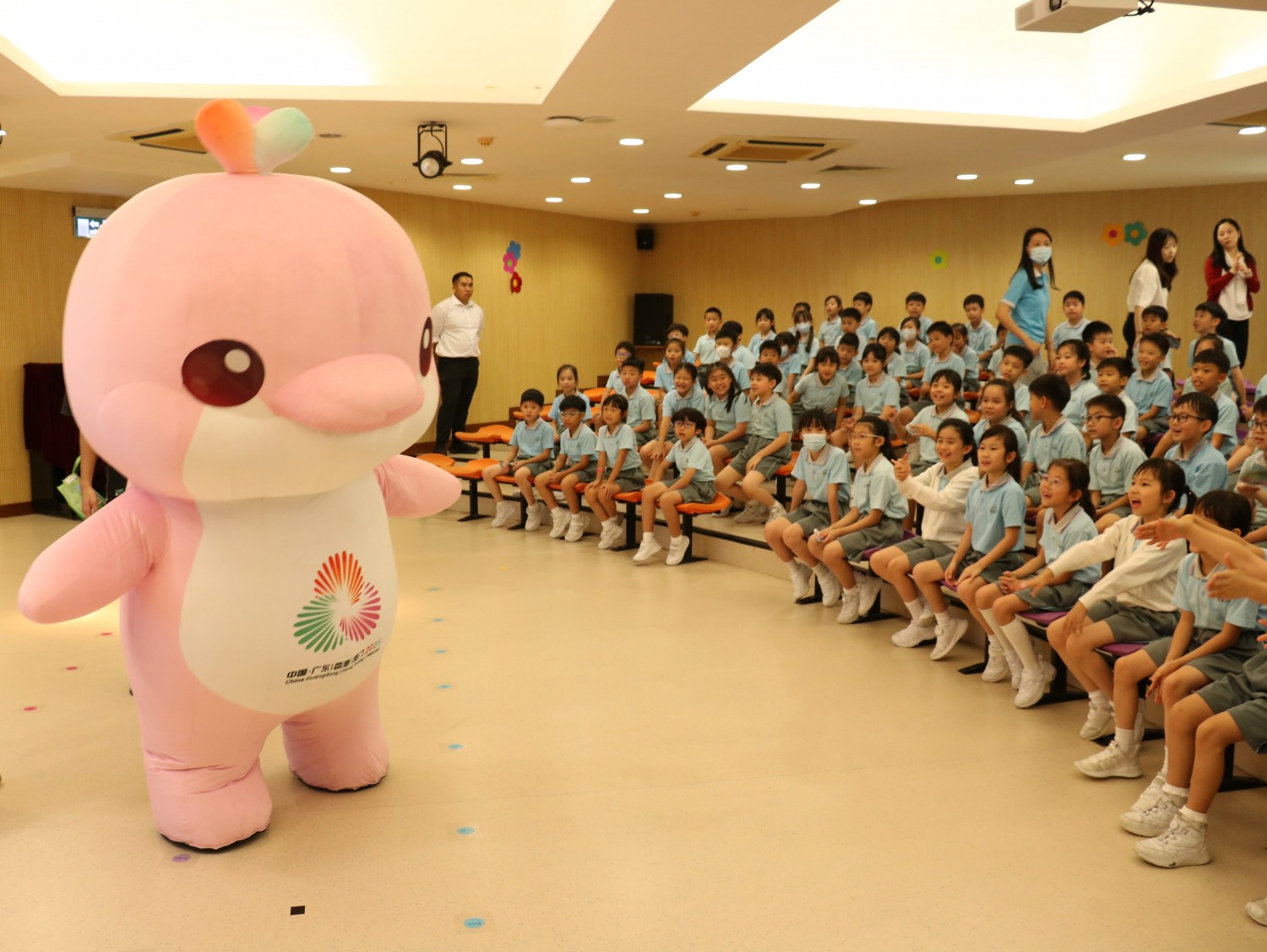 值得一提的是,全運會吉祥物喜洋洋和樂融融也來到了現場,它們的到來讓同學們歡喜不已,大家都爭相與吉祥物互動、合影留念。活動結束,同學們還收到了活動方準備的小紀念品。整個活動中,同學們都認真聆聽,積極互動,沉浸在充滿趣味又意義非凡的氛圍裡。