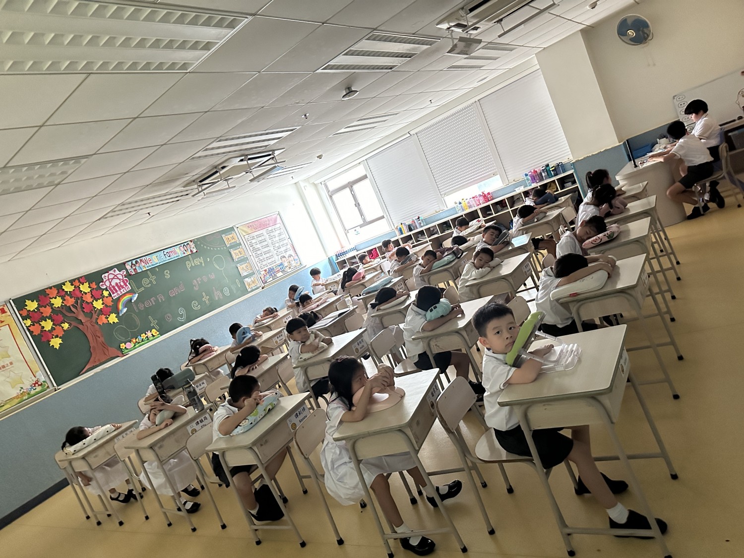 午餐後,哥哥姐姐們又會按時來到一年級課室,協助老師照看小朋友們午休。如果有同學想上洗手間,哥哥姐姐會貼心地陪著去,並叮囑他們注意安全。在這個過程中,一年級的小朋友們從哥哥姐姐身上學到了照顧他人、細心關懷的美好品質,自己也變得更加懂事乖巧,懂得去遵守午休的相關要求,逐漸養成了良好的午休習慣。