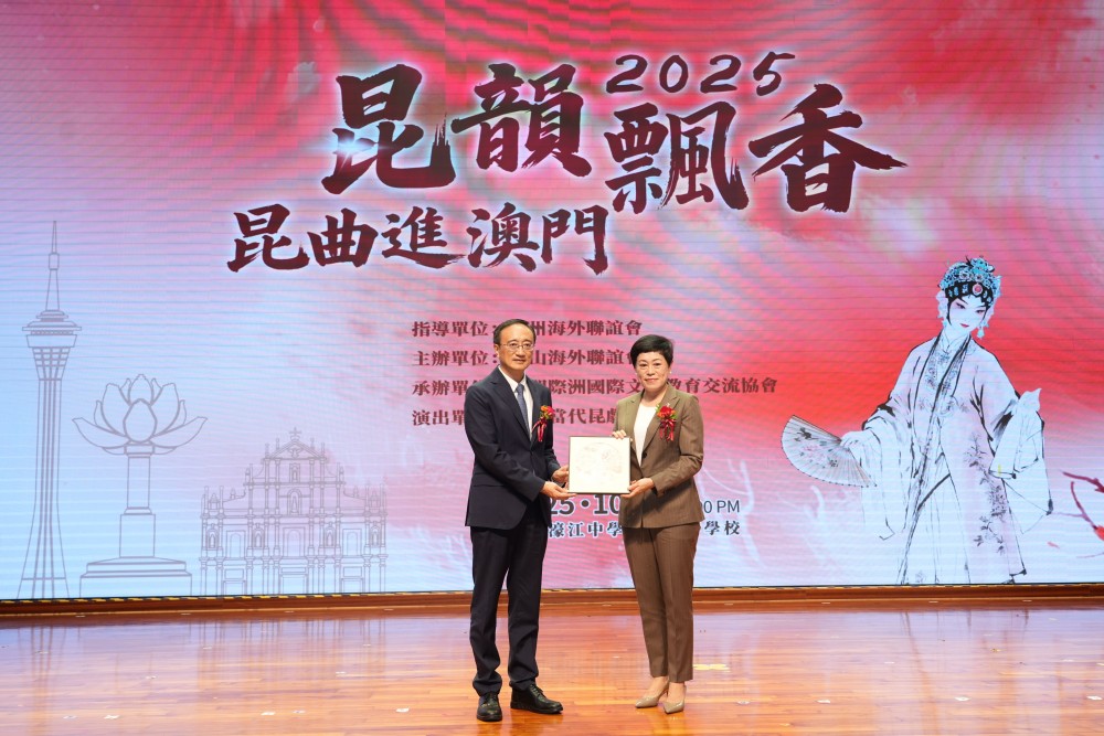 2025年恰逢中華人民共和國成立76周年與澳門回歸祖國26周年雙慶之際,澳門處處張燈結彩。10月16日下午,由蘇州海外聯誼會指導,港澳江蘇昆山聯誼會主辦,澳門際州國際文化教育交流協會承辦,昆山當代昆劇院演出的“2025昆韻飄香昆曲進澳門”活動,在澳門濠江中學附屬英才學校溫情啟幕。多位相關領導和文化界精英代表出席了本次活動。