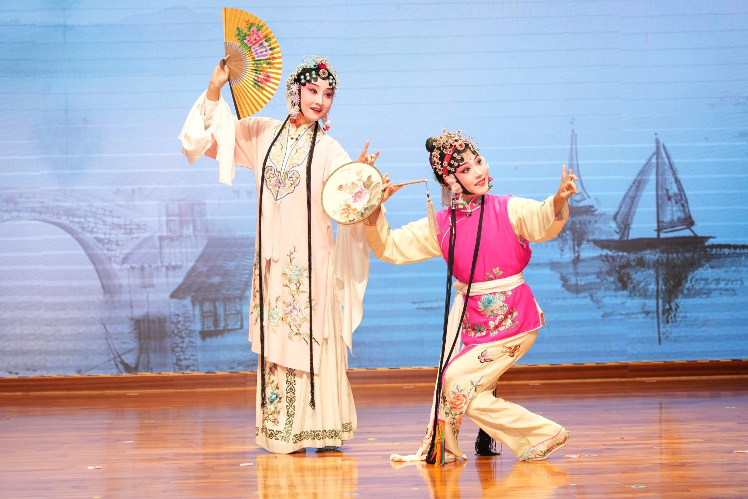 昆山當代昆劇院演員為現場嘉賓和師生帶來四出經典折子戲:武戲《白水灘》中的短打與棍花技巧令人目不暇接;《孽海記・下山》裏,小和尚靈動的神情和轉佛珠的場景引得陣陣笑聲;《牡丹亭・遊園驚夢》中,杜麗娘與柳夢梅的愛情故事動人心弦;壓軸的《虎囊彈・山門》一折,演員以單腿獨立完成十八羅漢造型,深厚功底贏得滿場喝彩。