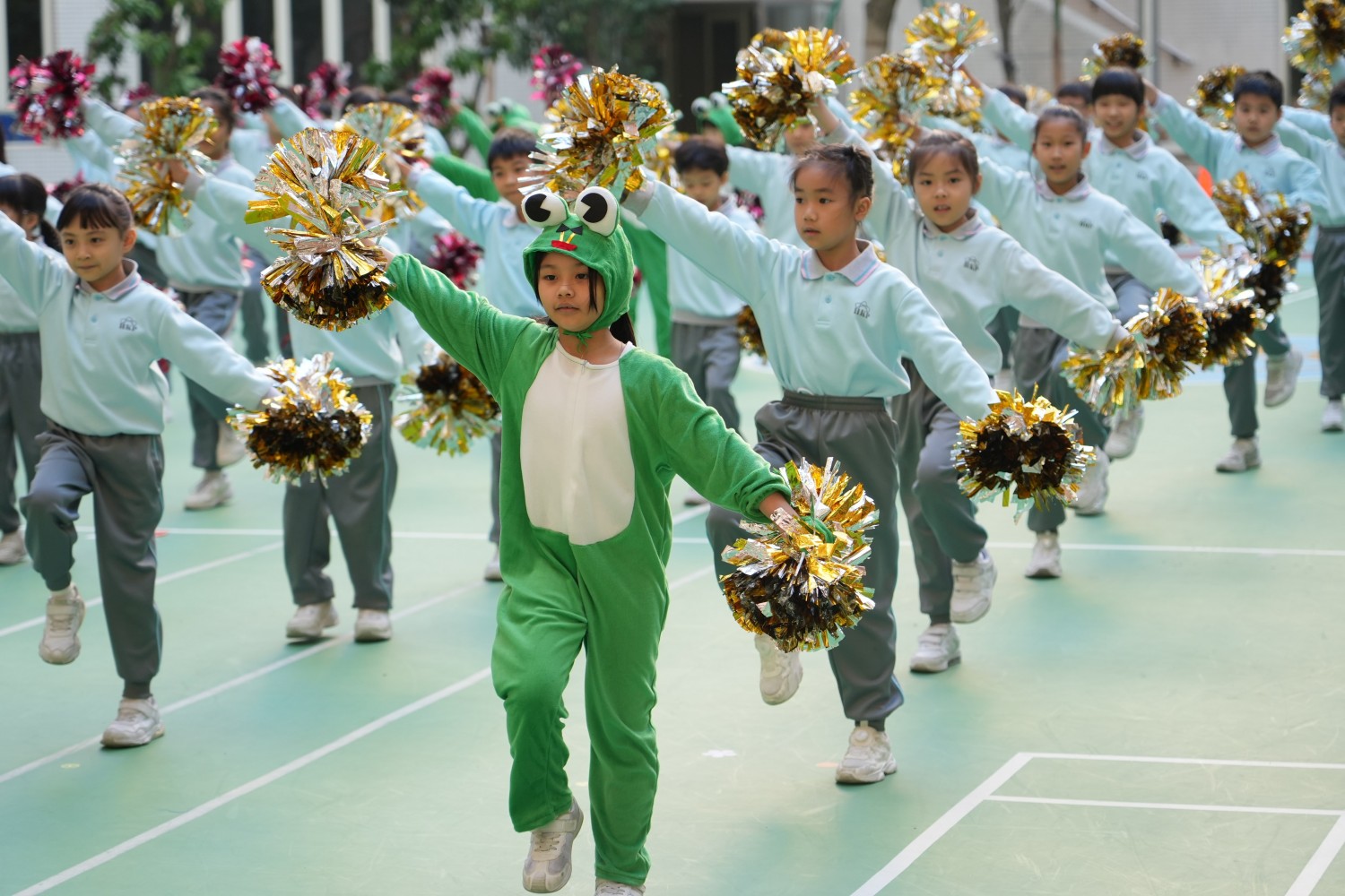開幕表演環節,小一年級帶來《“鼓”動節拍、“舞”動未來》的活力表演,小二年級獻上可愛的《小跳娃》演出。兩個年級還分別展示了韻律操《孩子的天空》與《無比閃耀》,靈動又富有動感的舞姿展現出孩子的童真與朝氣。