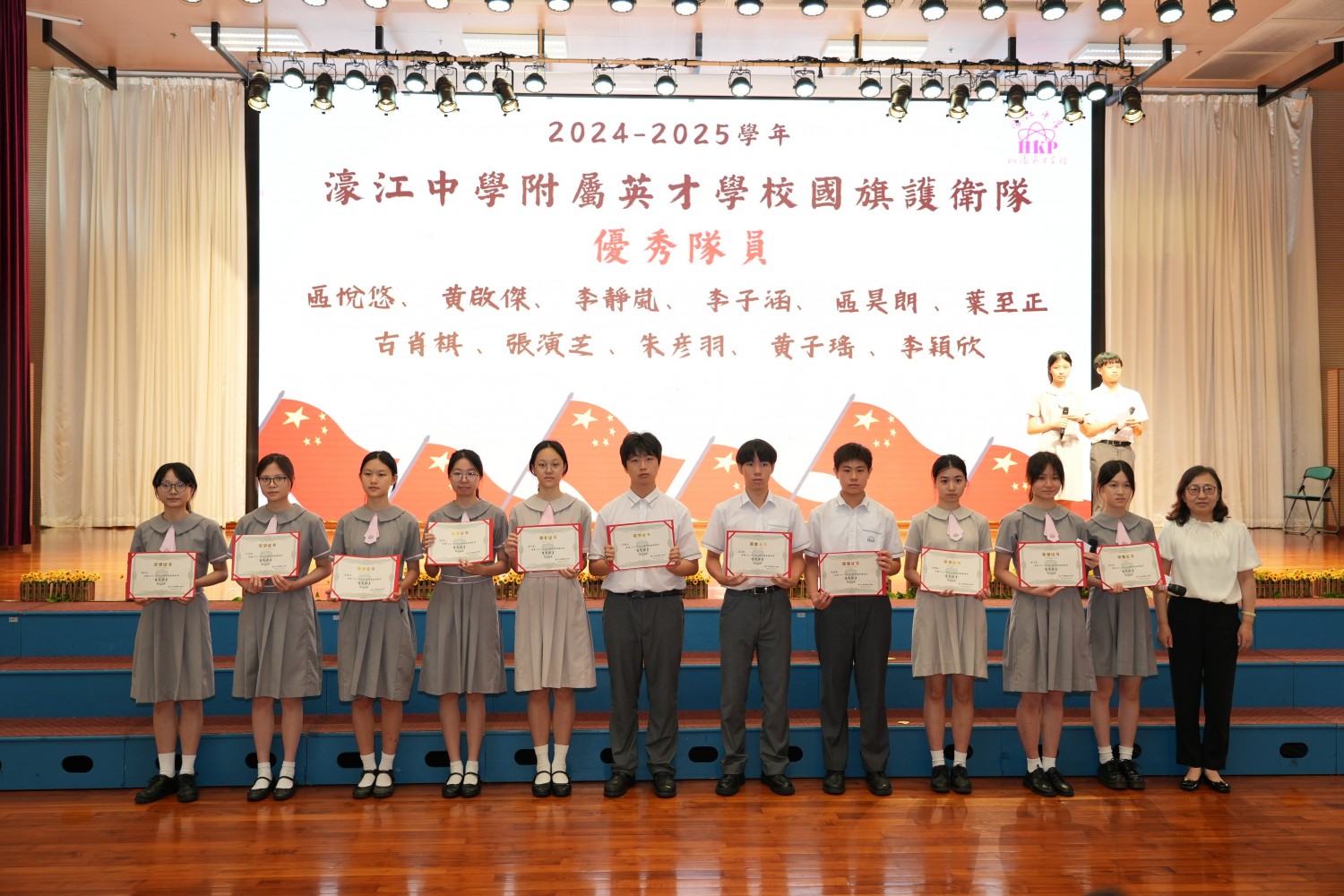 7 月 8 日,濠江中學附屬英才學校國旗護衛隊舉行以“傳承使命,護旗有我”為主題的周會。