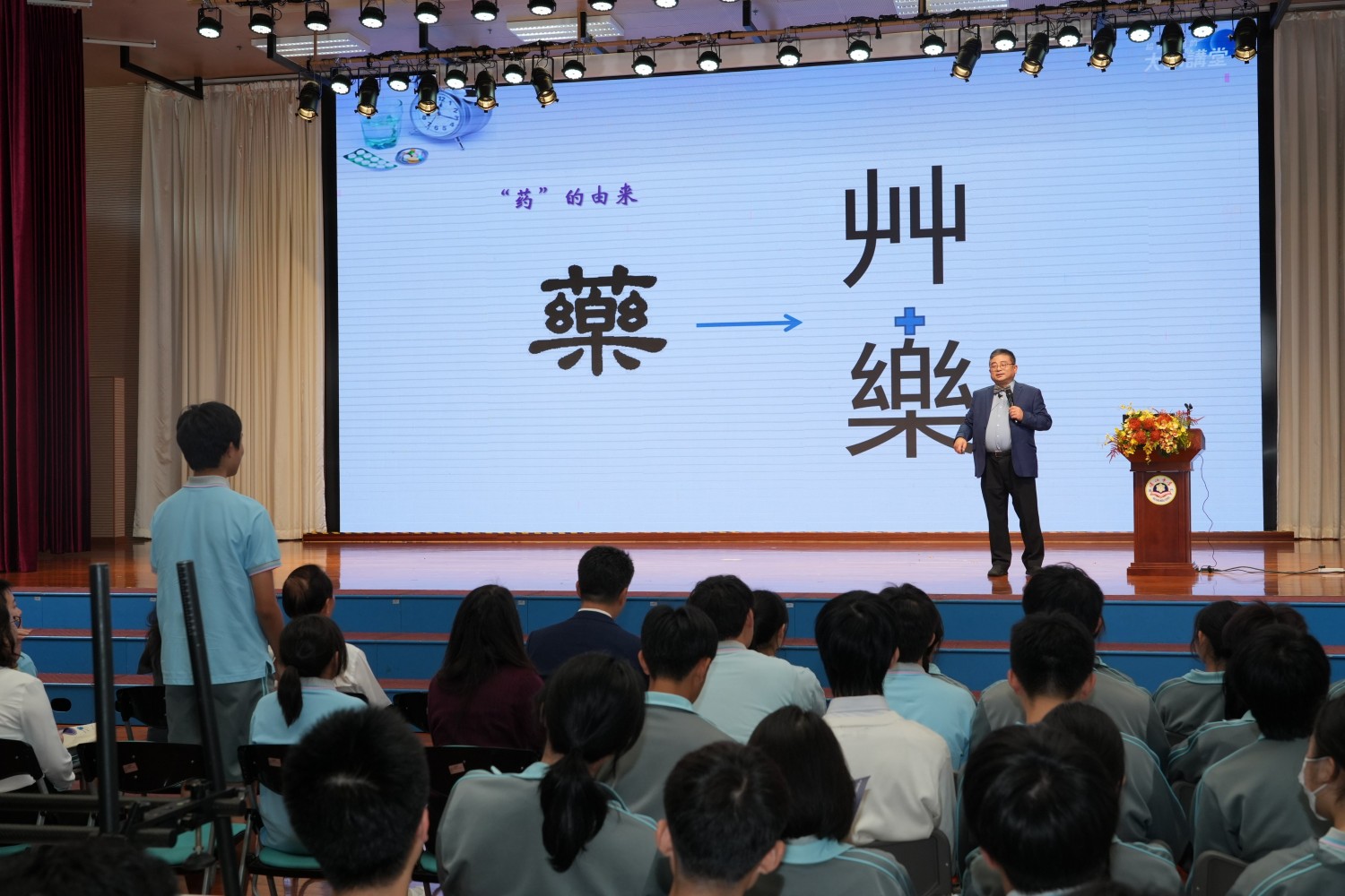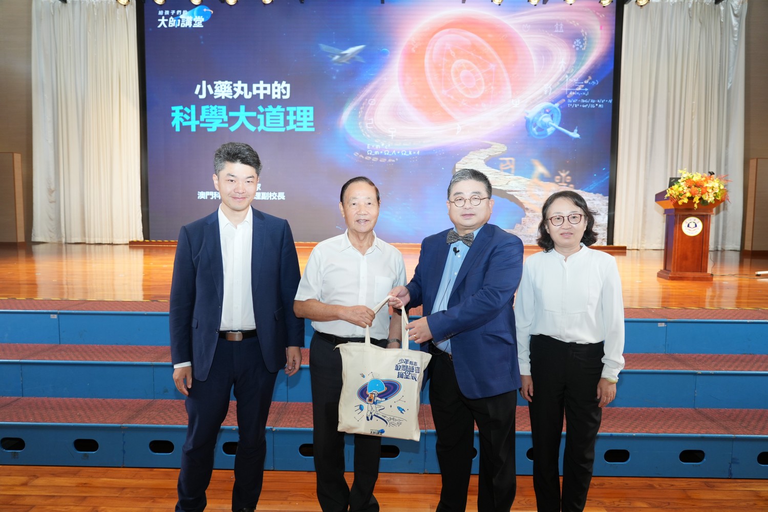 9月18日,由中國宋慶齡基金會主辦,澳門理工大學、國情教育(澳門)協會協辦的的“給孩子們的大師講堂”活動走進濠江中學附屬英才學校。本次活動邀請到國家重大研究計劃(973)首席科學家、歐洲科學與藝術院院士、澳門科技大學協理副校長、藥學院創院院長、澳門中華醫學會榮譽會長朱依諄先生蒞臨濠江英才,為同學們帶來一場聚焦學術前沿的專題講座——《小藥丸中的科學大道理》。