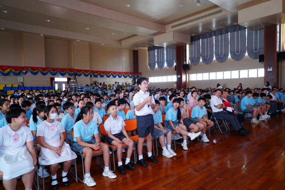 活動在同學們齊聲高唱國歌中拉開帷幕。濠江中學尤端陽校長致辭,他簡要回顧了抗戰歷史,向同學們介紹楊靖宇將軍英勇抗敵的壯烈歷程,勉勵同學們要銘記今日和平繁榮的來之不易,學習楊靖宇將軍崇高的愛國精神,從英雄事跡中汲取堅韌不拔、勇於擔當的力量。