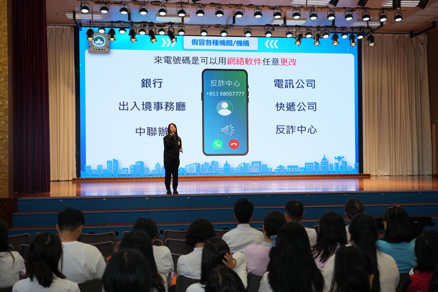 講座中,司警人員詳細介紹了當前高發的網絡詐騙類型,並結合近期案例,剖析詐騙分子的作案手法與話術特點,強調需提高警惕,不輕信陌生鏈接和人員。同時,司警人員亦向教師傳授實用防範措施,鼓勵教師將所學知識融入日常教學,協助學生及家長提高警覺。