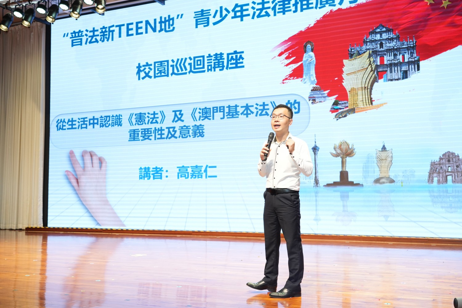 講座內容系統全面,涵蓋《憲法》對日常生活的意義及其發展歷程,並重點闡釋《基本法》與《憲法》之間的緊密關係。嘉賓進一步介紹了全國人民代表大會、國務院等國家機構,並梳理《中葡聯合聲明》與《澳門基本法》的歷史脈絡,詳細講解“一國兩制”、“高度自治”、“澳人治澳”的三大核心原則,以及澳門居民在基本法保障下的權利義務。