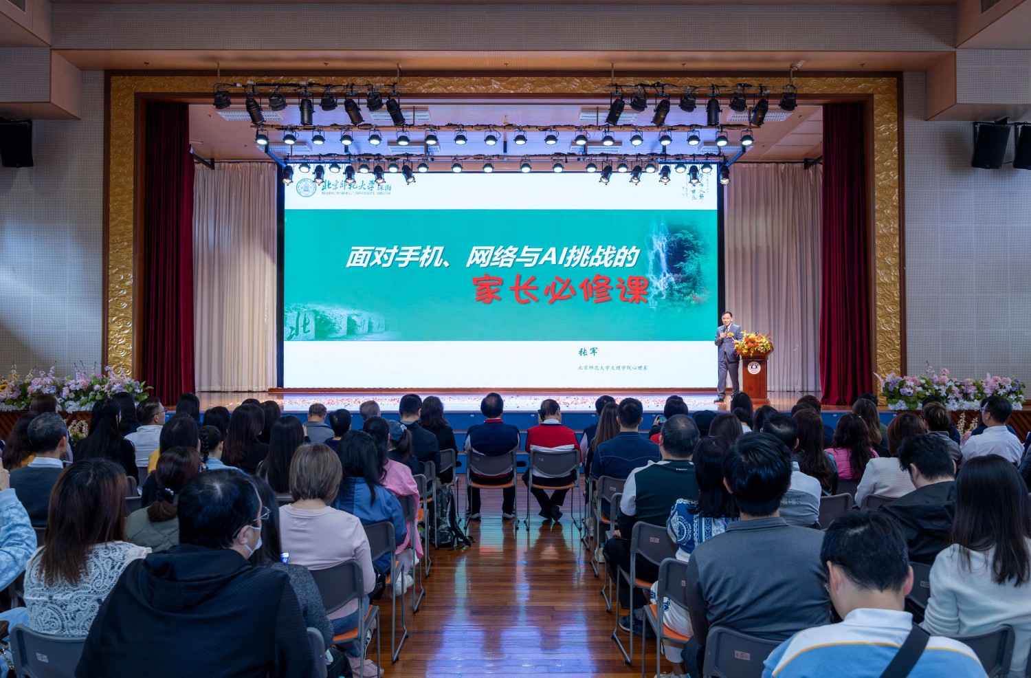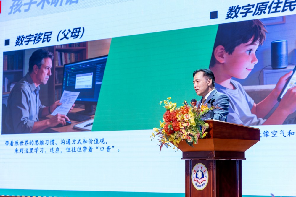 活動當日,學校特別邀請到北京師範大學張軍教授,為家長帶來專題講座——《從“數字原住民”到“智慧引路人”》,與家長們一同探討如何通過管理屏幕時間改善親子溝通,建立親密和諧的親子關係。講座為新時代下的家庭教育提供了專業指導,深受家長歡迎,現場反響熱烈。