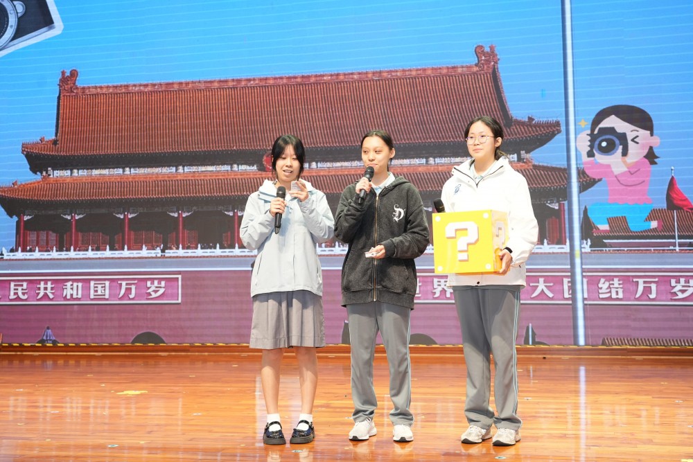 周會上,同學們通過視頻、話劇、服裝展示、歌舞等形式,重現了旅程中的珍貴瞬間:在天安門廣場凝視國旗升起時的莊嚴與自豪;漫步於故宮博物院紅牆黃瓦間,對厚重歷史的感悟;置身圓明園遺址,更讓同學們深刻認識到唯有自信自強,方能守護來之不易的民族復興,創造更光明的未來。此外,劇中也生動展現了同學們前往清華大學參訪的場景,與學長學姐深入交流後,對未來學業規劃的憧憬與激勵。