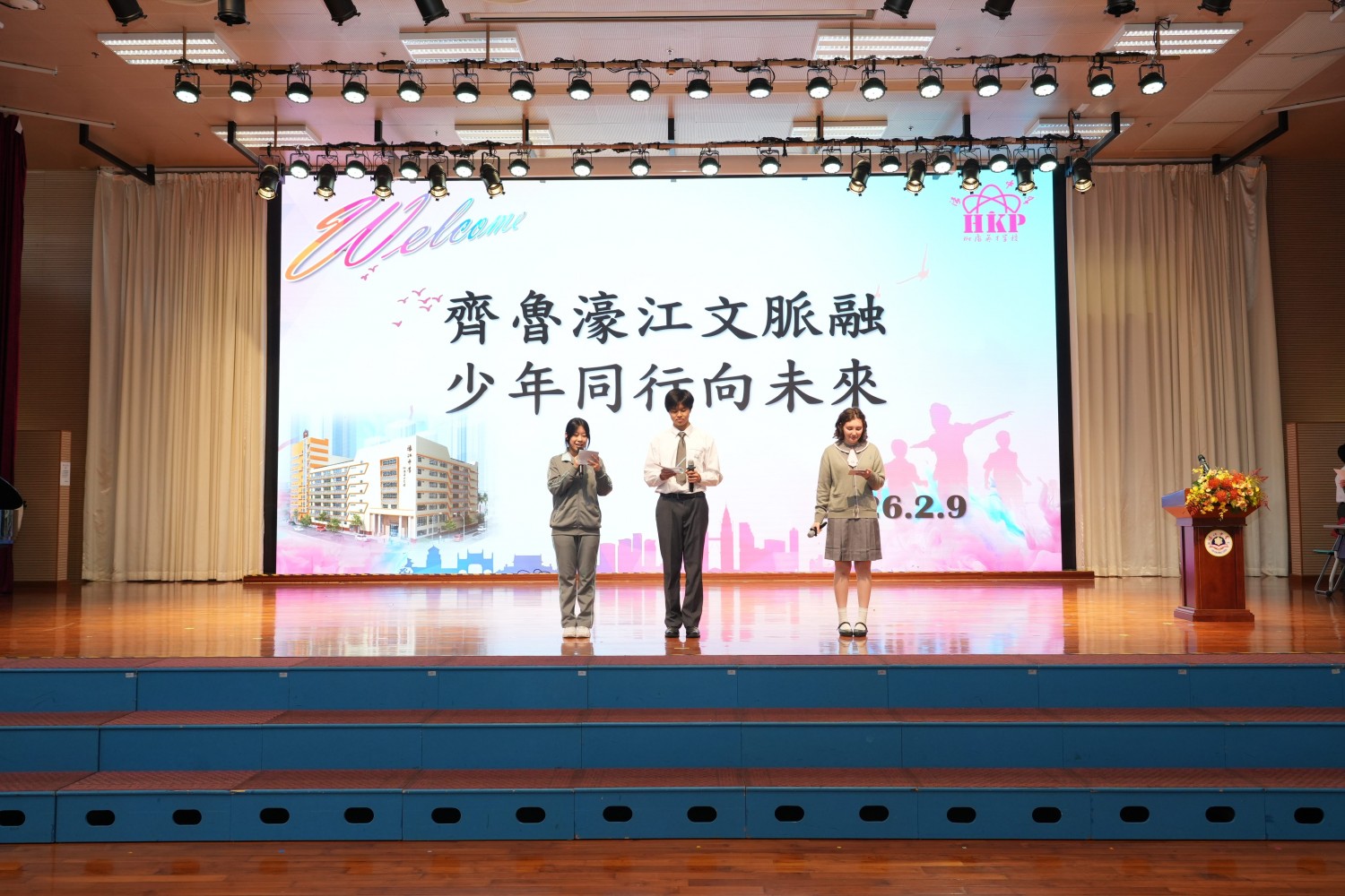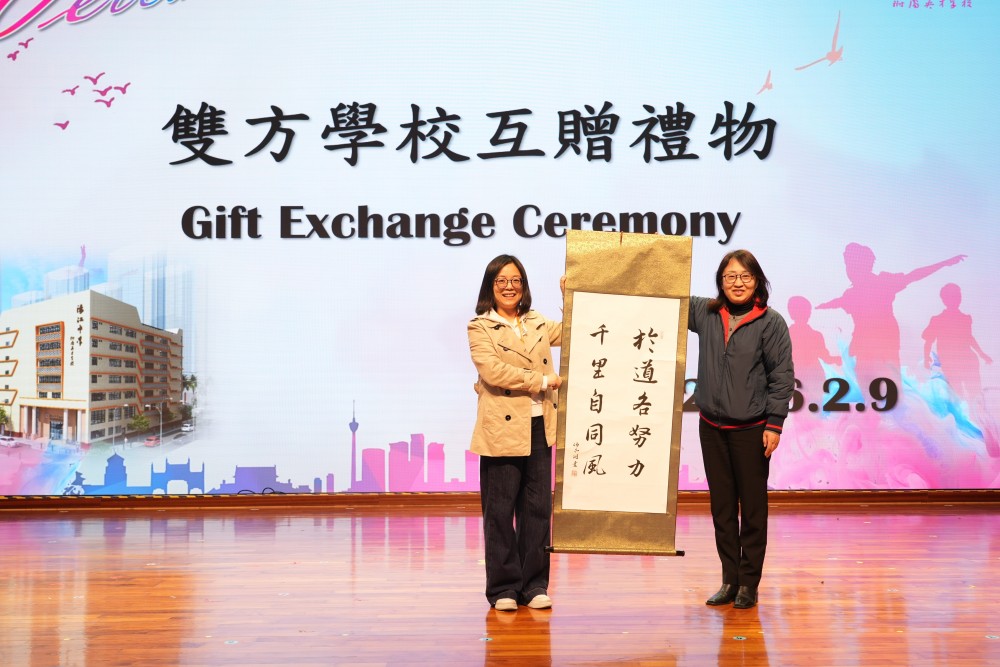 活動於學校禮堂正式開始,全體師生齊聲高唱國歌,在莊嚴肅穆的氛圍中凝聚愛國同心。隨後,兩校師生共同觀看濠江中學90周年校慶影片,回顧辦學歷程,展示校園文化;兩校教師代表分別發言,分享育人理念與教學實踐,激盪教育智慧;其後,兩校互贈紀念禮物,象徵著合作情誼與美好祝願。