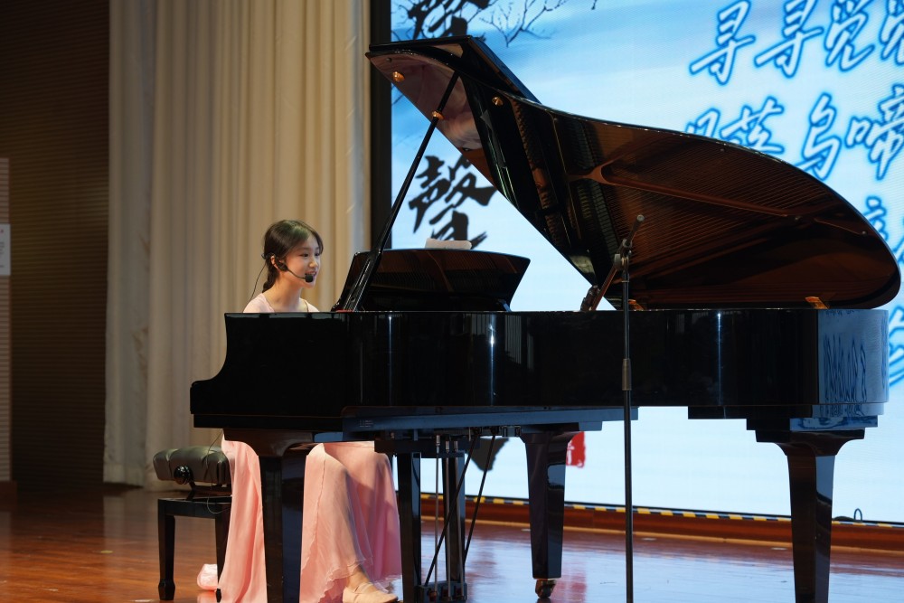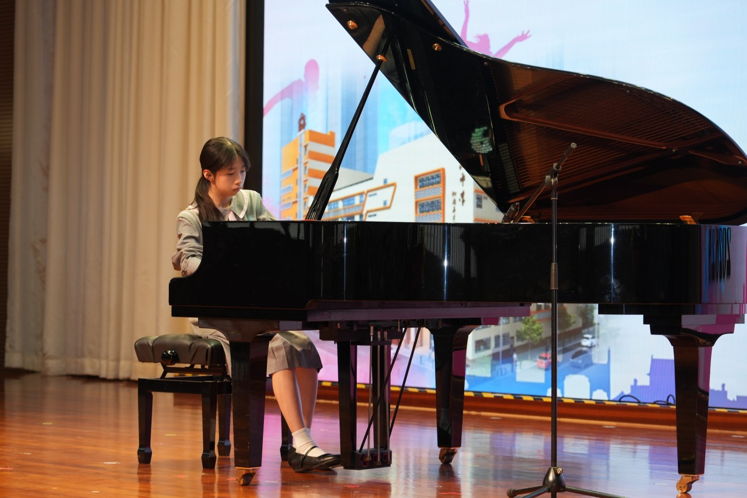 才藝展示環節,兩校學生分別準備了精彩紛呈的節目,姊妹學校的同學帶來歌曲《詠春》與精心繪製的畫作,濠江英才的同學們則以舞蹈彈唱《聲聲慢》、鋼琴獨奏《夕陽簫鼓》和朗誦《澳門歸航,盛世同光》回應,展現了當代青少年朝氣蓬勃、多才多藝的風貌。隨後,濠江英才學生引導來訪師生分批參觀校園,走訪圖書館、書法室、校園主題牆及保送榜,深入了解學校的學習環境與育人成果。參觀結束後,全體師生齊聚操場,在杜嵐校長銅像前拍攝大合照,定格這難忘的交流時刻。活動在溫馨的歡送氣氛中圓滿結束。