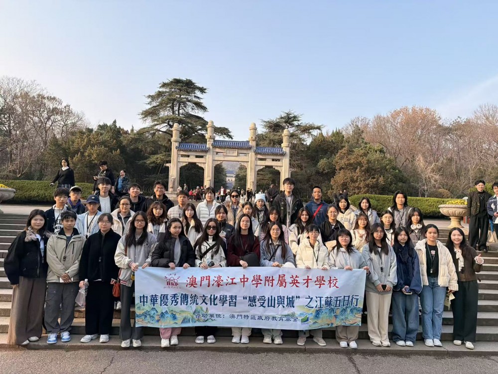 為深化學生對祖國歷史文化的認識,厚植愛國愛澳情懷,3月10日至14日,濠江中學附屬英才學校組織師生赴江蘇開展為期五天的“感受山與城愛國之旅”研學活動。本次考察活動獲澳門特區政府教育基金“學校發展資助計劃”資助。行程橫跨蘇州、揚州、南京三地,透過實地走訪歷史遺跡與文化地標,引領學生在行走中感悟歷史、在體驗中傳承愛國精神。