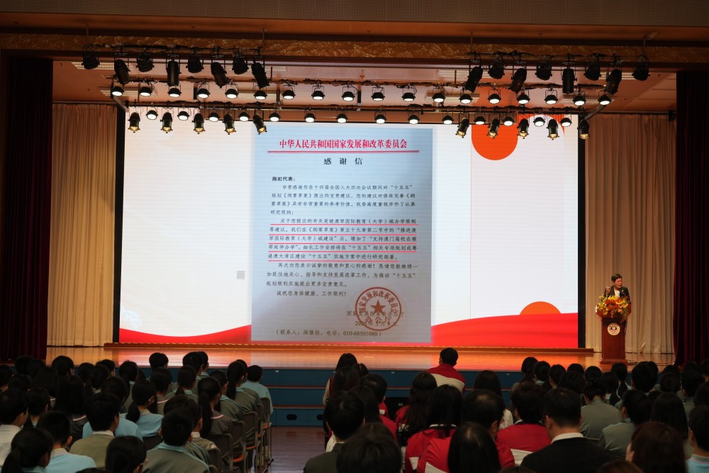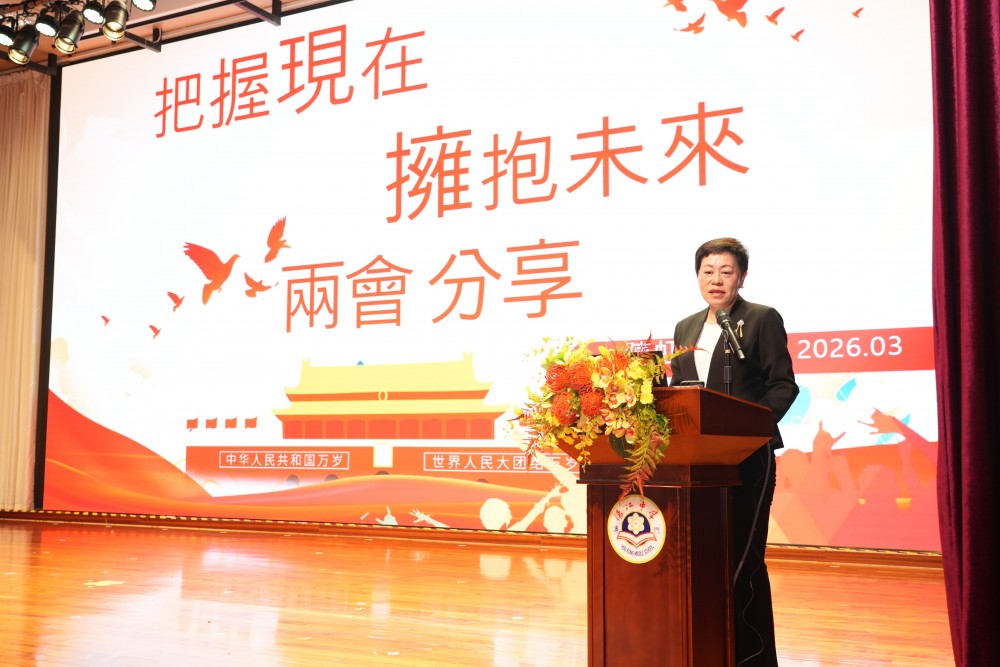 為增加師生對國家發展動向的瞭解,深入學習“兩會”精神,3月24日,澳區全國人大代表、濠江中學陳虹副校長為濠江英才師生帶來一場聚焦“兩會”精神的專題分享會,全體師生接受了一次深刻的愛國主義教育。