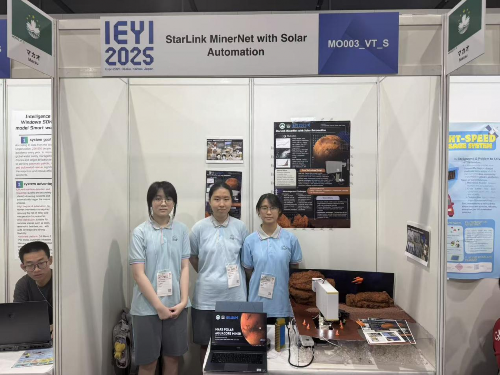 日前,第21屆日本大阪iEYI國際青年發明家博覽會圓滿結束,全球13個國家及地區的150件優秀作品參賽,隊伍獲獎比率為53.9%,澳門代表團表現優異,在賽項上共斬獲1銀、2銅。其中,英才校部張元青、陳曉楠、陳悅晴作品《StarLink MinerNet with Solar Automation》(星鏈礦能:光伏自動化采礦網絡),在競爭激烈的“前瞻技術”(Visionary Technologies)類別中榮獲銅獎。期望同學們繼續發揚創新精神,在科技道路上不斷探索、勇攀高峰!指導教師為:李克儉、梁敏聰、呂霆翀、邱樂豐、陳穎信、潘德恩、楊逸。